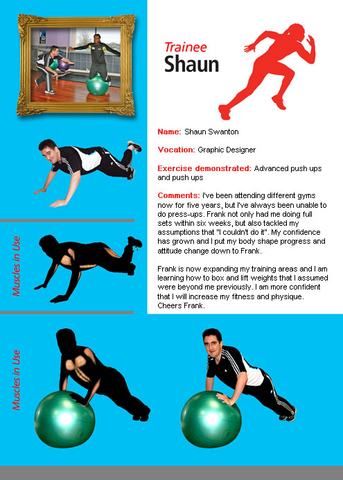 The common misconception in training is this: people think they just need fixed resistance and cardiovascular gym machines for training. However, most fixed resistance and gym machines are designed to only give you forward movement, this limits the body's natural functional, rotational and lateral capabilities. Therefore, in order to gain maximum body tone and fitness, one needs to challenge the body with different exercises, which incorporate a full range of motion. Keep your body toned and agile; let your muscles discover new dimensions when changing the positions of your exercises. Challenge your body and keep it guessing. Have Fun.